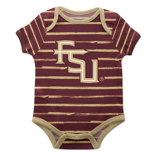 Florida State Stripe Garnet and Metallic Boys One Piece Jumpsuit SS by Vive La Fete