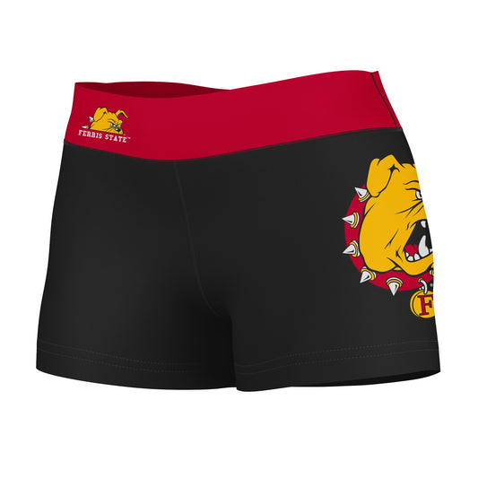 Ferris State Bulldogs Logo on Thigh & Waistband Black Red Womens Yoga Booty Workout Shorts by Vive La Fete