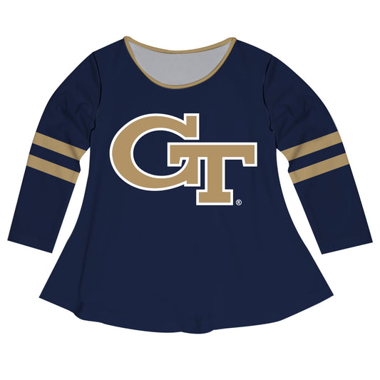 Georgia Tech Yellow Jackets Big Logo Blue Stripes Long Sleeve Girls Laurie Top by Vive La Fete