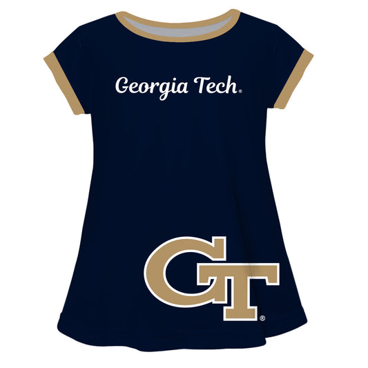 Georgia Tech Yellow Jackets Big Logo Blue Short Sleeve Girls Laurie Top by Vive La Fete