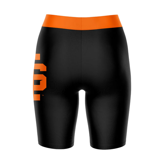 Idaho State Bengals ISU Game Day Logo on Thigh and Waistband Black and Orange Womens Bike Shorts by Vive La Fete