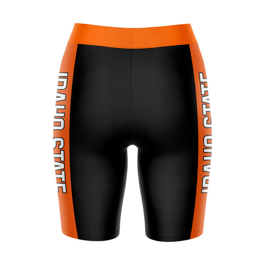 Idaho State Bengals ISU Game Day Logo on Waistband and Orange Stripes Black Womens Bike Shorts by Vive La Fete