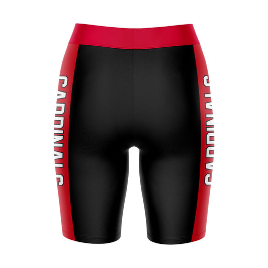 Lamar Cardinals Game Day Logo on Waistband and Red Stripes Black Womens Bike Shorts by Vive La Fete