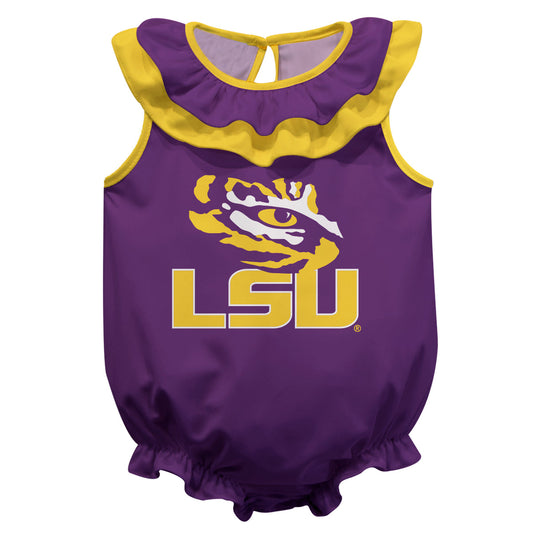 LSU Tigers Purple Sleeveless Ruffle One Piece Jumpsuit Logo Bodysuit by Vive La Fete
