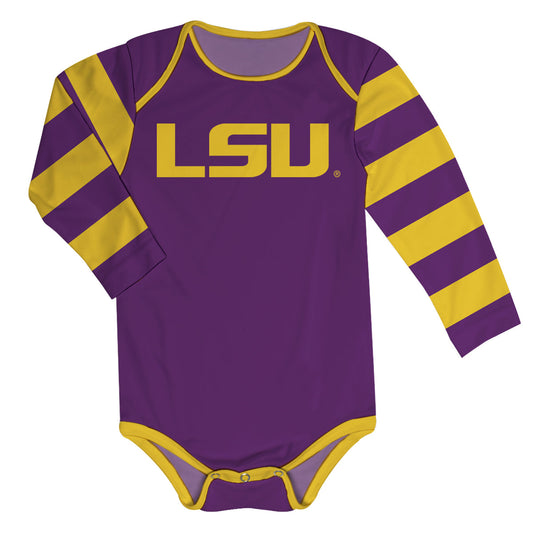 LSU Tigers Purple And Gold Stripes Long Sleeve One Piece Jumpsuit by Vive La Fete