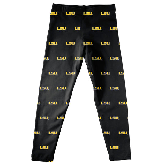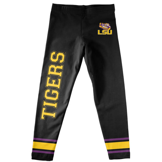 LSU Tigers Verbiage And Logo Black Stripes Girls Leggings