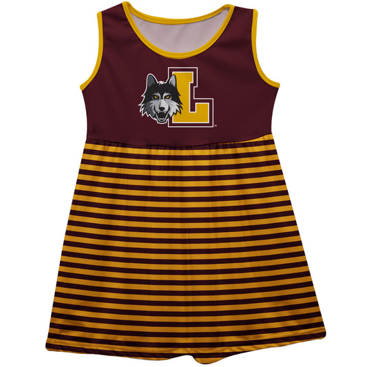 Loyola University Chicago Ramblers Maroon and Gold Sleeveless Tank Dress with Stripes on Skirt by Vive La Fete