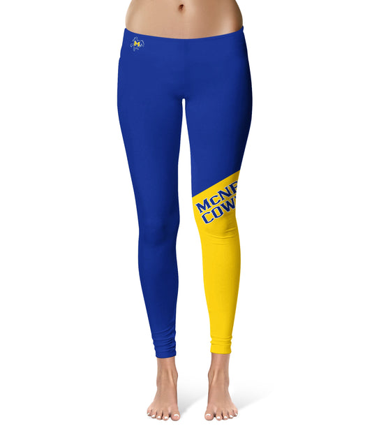 McNeese State University Cowboys Game Day Leg Color Block Blue Gold Yoga Leggings for Women by Vive La Fete