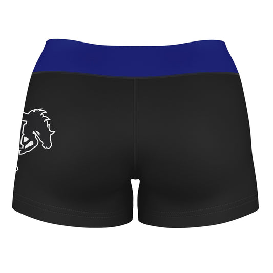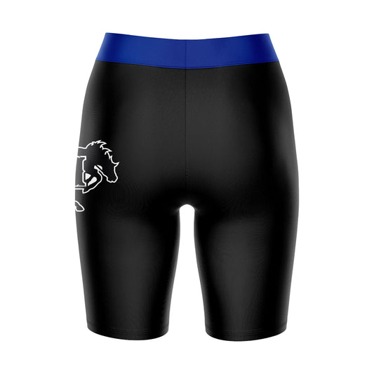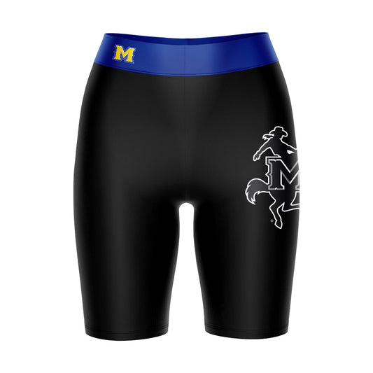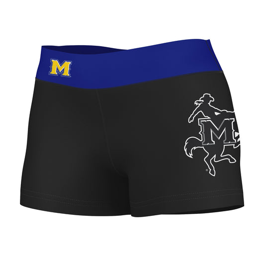 McNeese State Cowboys Logo on Thigh & Waistband Black & Blue Womens Yoga Booty Workout Shorts by Vive La Fete