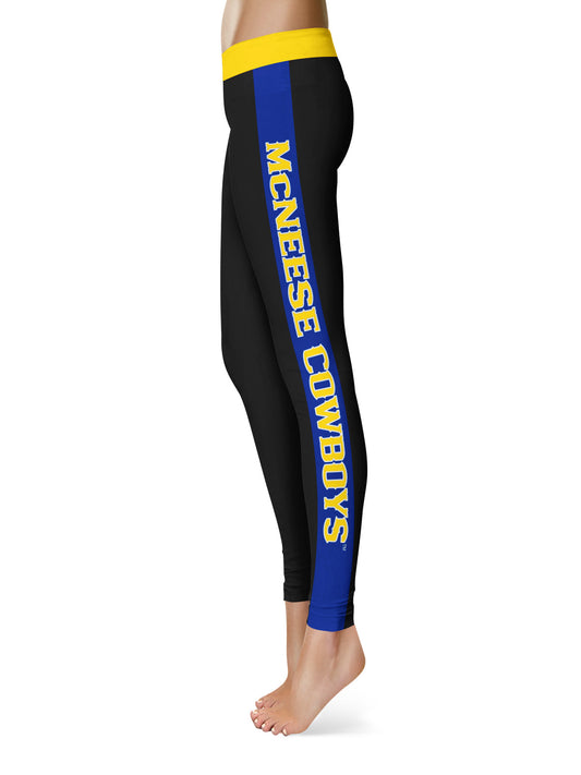 McNeese State University Cowboys Game Day Blue Stripes Black Yoga Leggings for Women by Vive La Fete