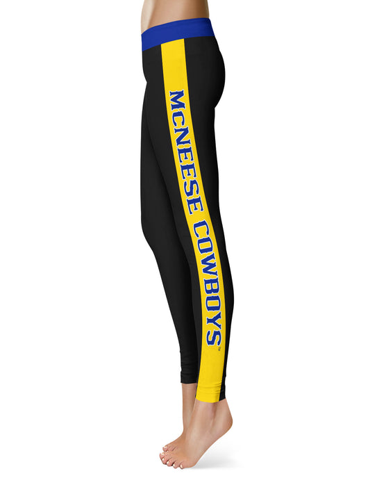 McNeese State University Cowboys Game Day Gold Stripes Black Yoga Leggings for Women by Vive La Fete