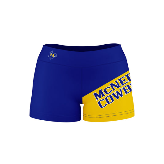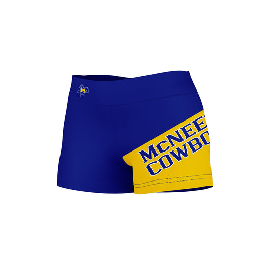 McNeese State Cowboys Game Day Collegiate Leg Color Block Blue Gold Optimum Womens Yoga Shorts by Vive La Fete