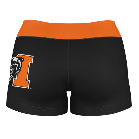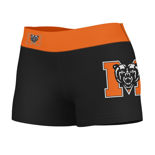 Mercer Bears MU Logo on Thigh and Waistband Black & Orange Womens Yoga Booty Workout Shorts by Vive La Fete