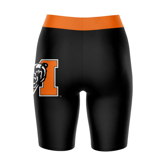 Mercer University Bears MU Game Day Logo on Waistband and Orange Stripes Black Womens Bike Shorts by Vive La Fete