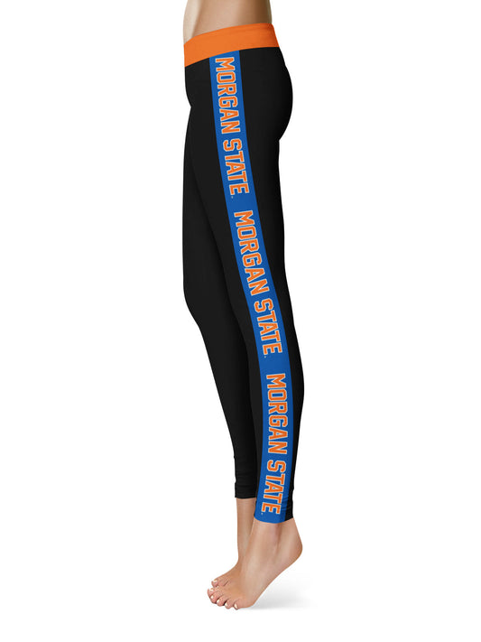 Morgan State Bears Game Day Blue Stripes Black Yoga Leggings for Women by Vive La Fete