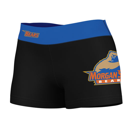 Morgan State Bears Logo on Thigh & Waistband Black & Blue Womens Yoga Booty Workout Shorts by Vive La Fete