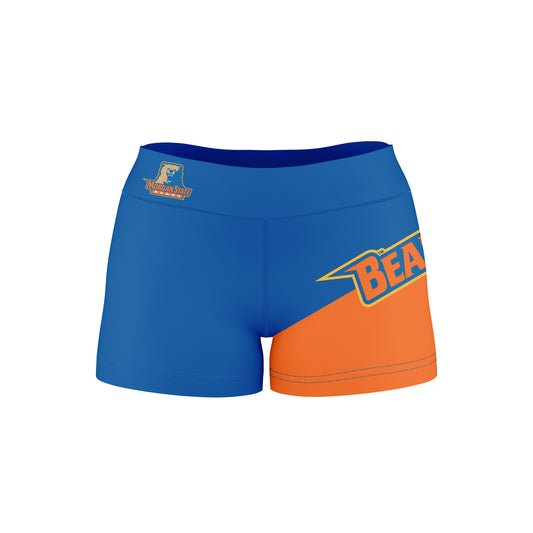 Morgan State Bears Game Day Collegiate Leg Color Block Blue Orange Optimum Womens Yoga Shorts by Vive La Fete
