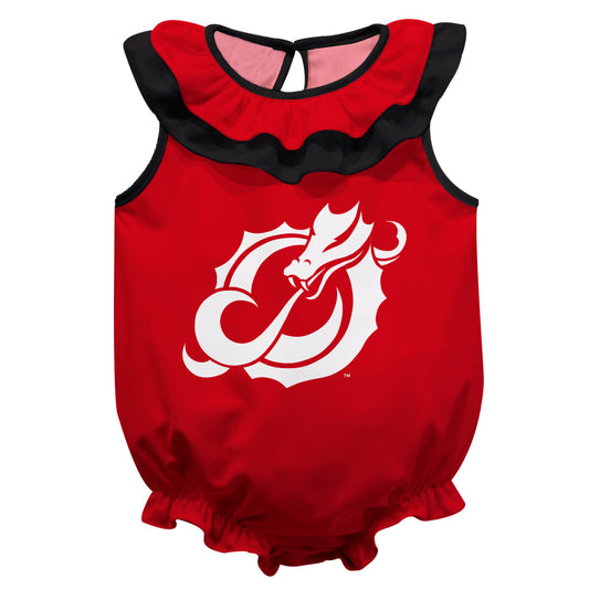Minnesota State Dragons Red Sleeveless Ruffle One Piece Jumpsuit Logo Bodysuit by Vive La Fete