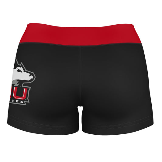NIU Huskies Game Day Logo on Thigh and Waistband Black and Red Womens Yoga Booty Workout Shorts by Vive La Fete