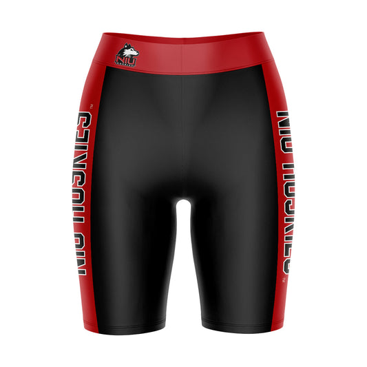 Northern Illinois Huskies Game Day Logo on Waistband and Red Stripes Black Womens Bike Shorts by Vive La Fete
