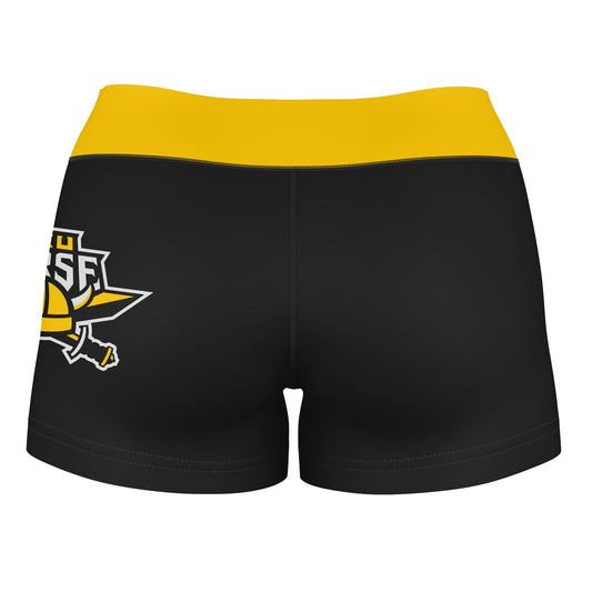 Northern Kentucky Norse Logo on Thigh and Waistband Black & Gold Womens Yoga Booty Workout Shorts by Vive La Fete