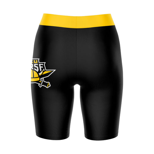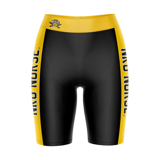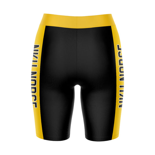 Northern Kentucky Norse Game Day Logo on Waistband and Gold Stripes Black Womens Bike Shorts by Vive La Fete