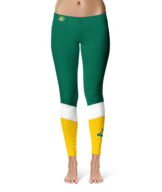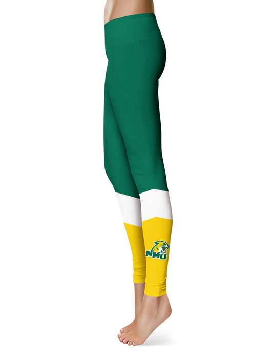 NMU Northern Michigan Wildcats Game Day Leg Color Block Green Gold Yoga Leggings for Women by Vive La Fete