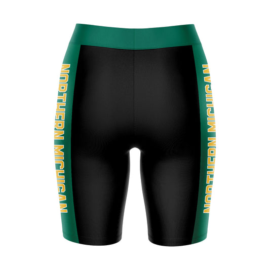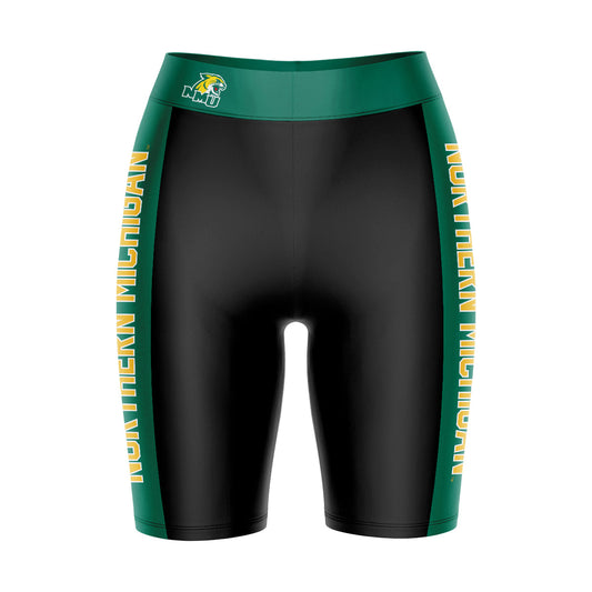 Northern Michigan Wildcats Game Day Logo on Thigh and Waistband Black and Green Womens Bike Shorts by Vive La Fete