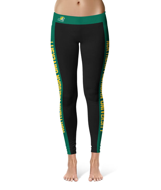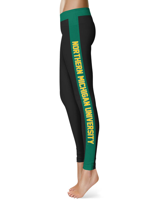 Northern Michigan Wildcats Game Day Green Stripes Black Yoga Leggings for Women by Vive La Fete