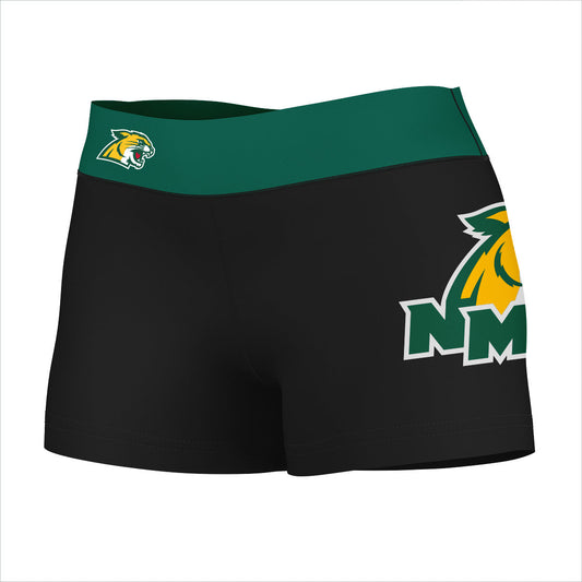 Northern Michigan Wildcats Logo on Thigh & Waistband Black & Green Womens Yoga Booty Workout Shorts by Vive La Fete