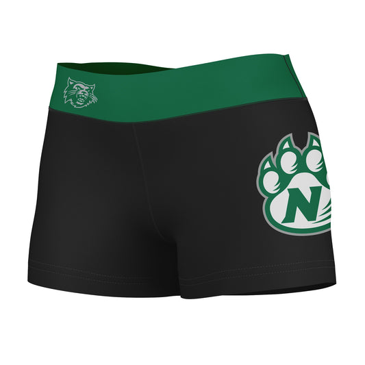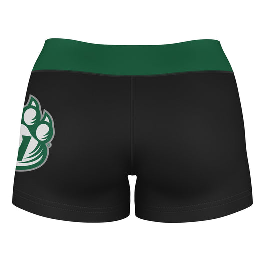Northwest Missouri Bearcats Logo on Thigh and Waistband Black & Green Booty Workout Shorts by Vive La Fete