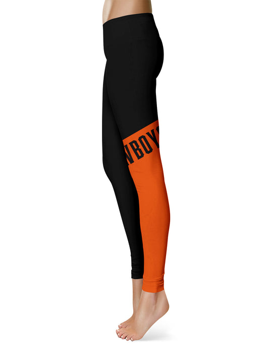 Oklahoma State Cowboys Game Day Leg Color Block Black Orange Yoga Leggings for Women by Vive La Fete