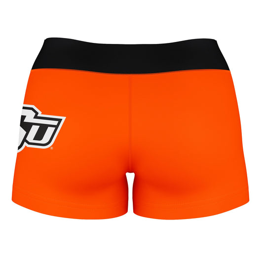 OSU Cowboys Game Day Logo on Thigh and Waistband Orange & Black Womens Yoga Booty Workout Shorts by Vive La Fete