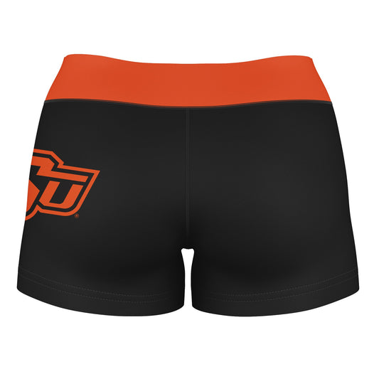 OSU Cowboys Game Day Logo on Thigh and Waistband Black & Orange Womens Yoga Booty Workout Shorts by Vive La Fete