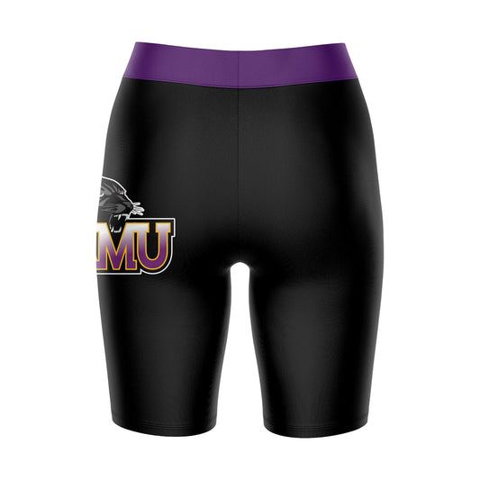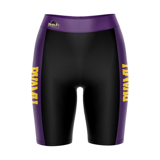 Prairie View A&M Panthers PVAMU Logo on Thigh and Waistband Black and Purple Womens Bike Shorts by Vive La Fete
