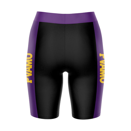 Prairie View A&M Panthers Game Day Logo on Waistband and Purple Stripes Black Womens Bike Shorts by Vive La Fete