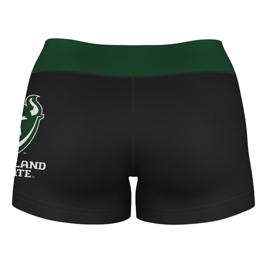 PSU Vikings Game Day Logo on Thigh and Waistband Black & Green Womens Yoga Booty Workout Shorts by Vive La Fete