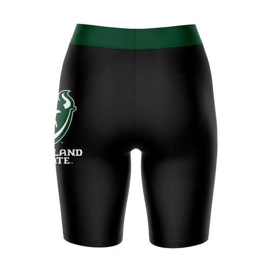 Portland State Vikings Game Day Logo on Waistband and Green Stripes Black Womens Bike Shorts by Vive La Fete