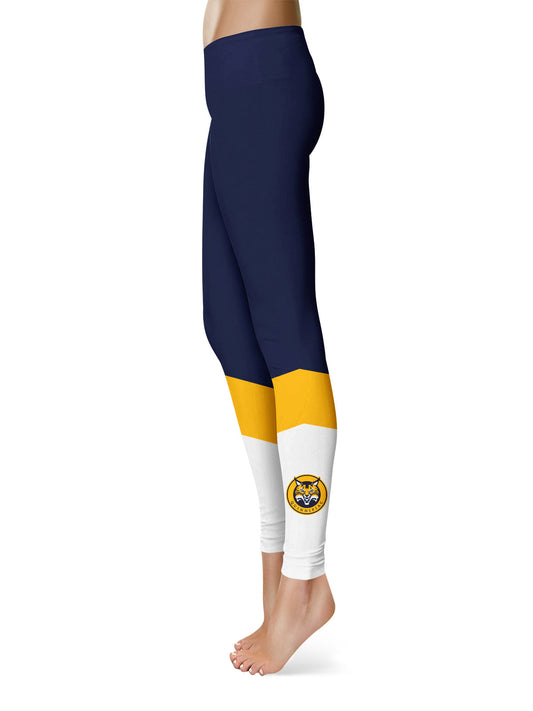 Quinnipiac University Bobcats Game Day Leg Color Block Navy White Yoga Leggings for Women by Vive La Fete