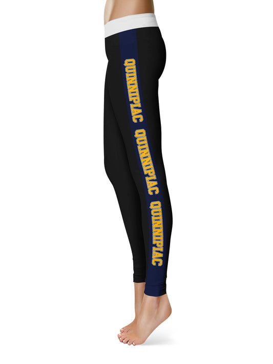 Quinnipiac Bobcats Game Day White Stripes Black Yoga Leggings for Women by Vive La Fete