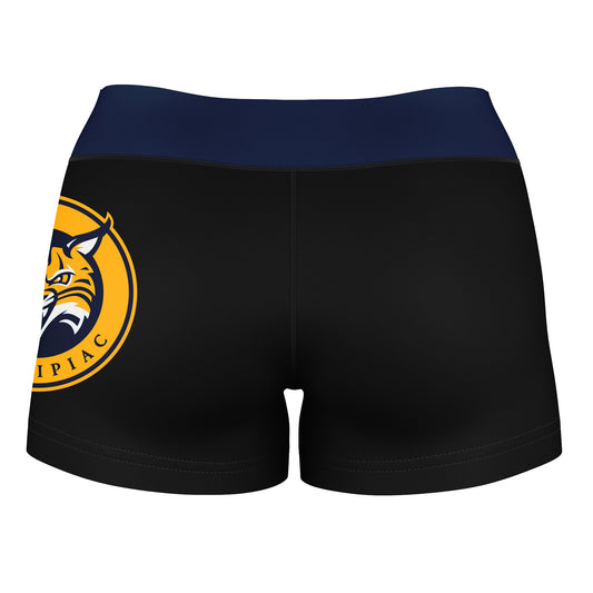 Quinnipiac Bobcats Logo on Thigh & Waistband Black & Navy Womens Yoga Booty Workout Shorts by Vive La Fete