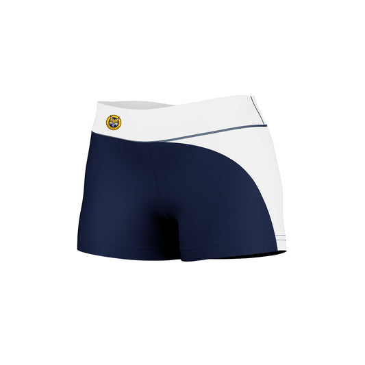 Quinnipiac Bobcats Collegiate Waist Color Block Navy White Optimum Womens Yoga Shorts by Vive La Fete