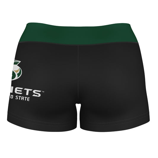 Sacramento State Hornets Logo on Thigh and Waistband Black & Green Booty Workout Shorts by Vive La Fete
