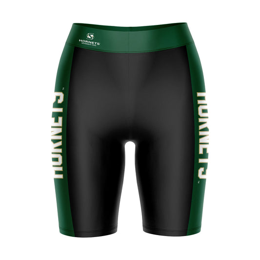 Sacramento State Hornets Game Day Logo on Thigh and Waistband Black and Green Womens Bike Shorts by Vive La Fete