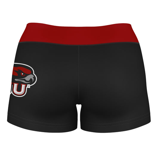 SJU Hawks Game Day Logo on Thigh and Waistband Black and Red Womens Yoga Booty Workout Shorts by Vive La Fete