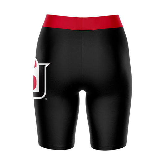 Seattle University Redhawks Game Day Logo on Waistband and Red Stripes Black Womens Bike Shorts by Vive La Fete