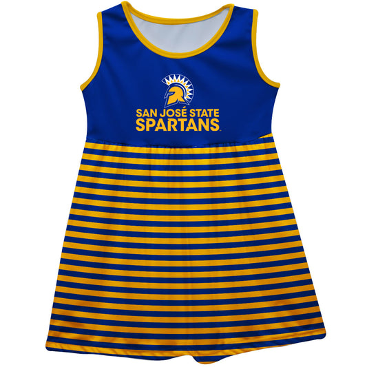 San Jose State University Spartans Girls Game Day Sleeveless Tank Dress Solid Blue Logo Stripes on Skirt by Vive La Fete