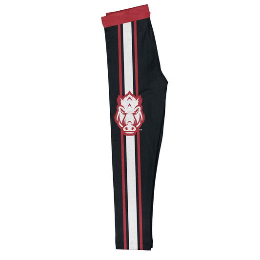 Arkansas Razorbacks Verbiage And Logo Black Stripes Girls Leggings
