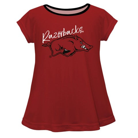 Arkansas Razorbacks Big Logo Red Short Sleeve Girls Laurie Top by Vive La Fete
