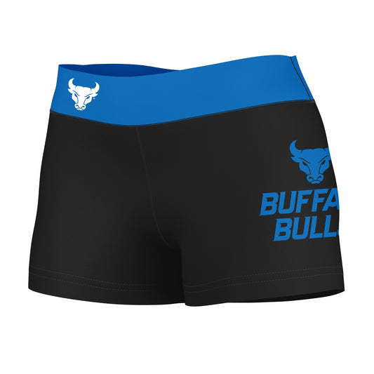 Buffalo Bulls Logo on Thigh and Waistband Black & Blue Womens Yoga Booty Workout Shorts by Vive La Fete